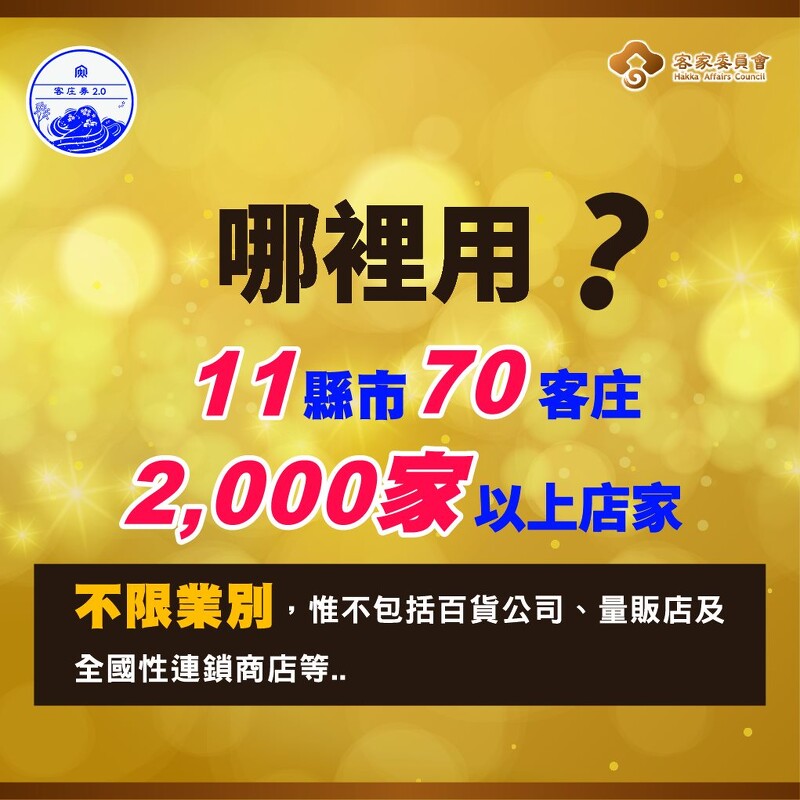配合行政院振興五倍劵加碼 客家委員會為了振興客庄社區經濟再次推出客庄券20預算金額為2億總共預計發出40萬份面額500元客庄券.